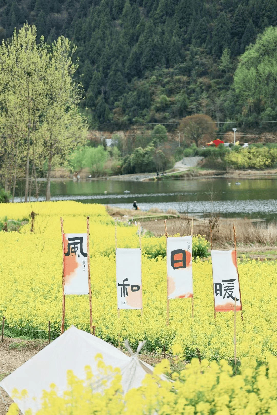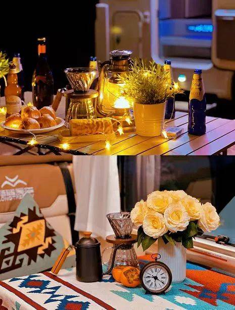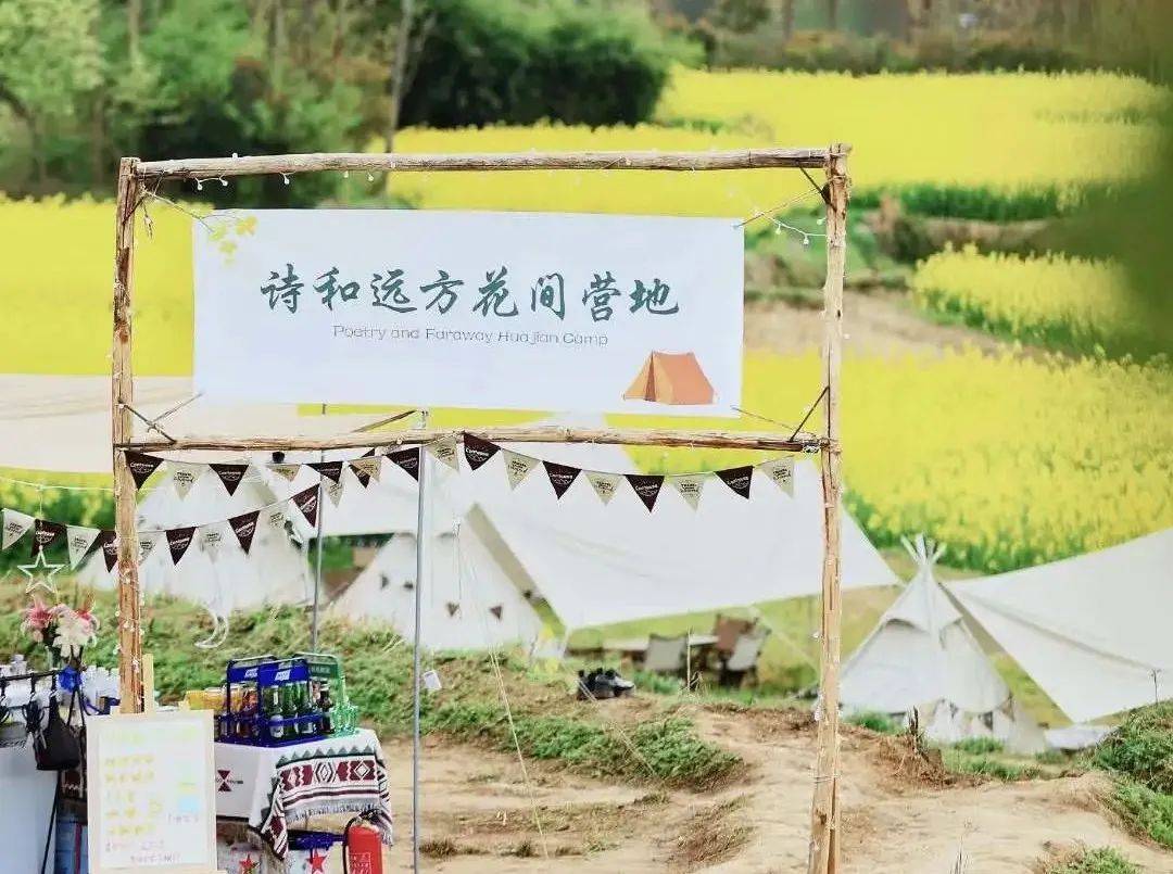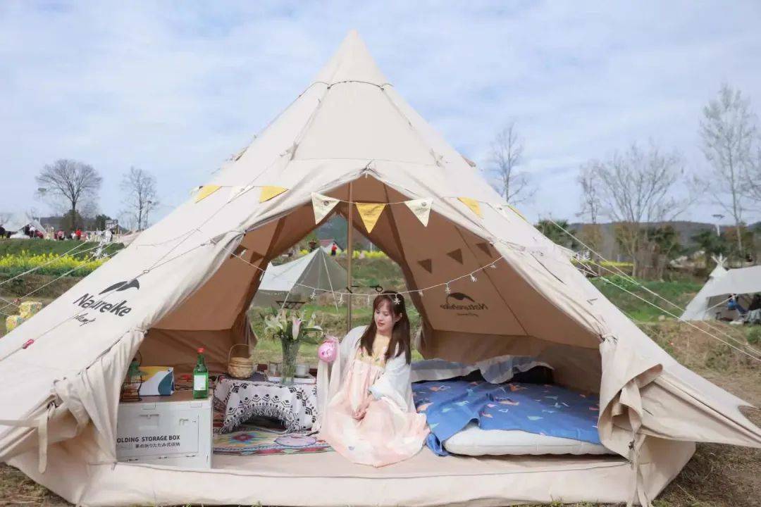 夜色落下之前,悠闲地做个看花人。走累了,就坐在克米特椅上,享受精致的下午茶,感受在花海中围炉煮茶的浪漫。或者天幕撑开,躺在帐篷里,掀起帐门,感受漫天的蓝和满眼的金黄。