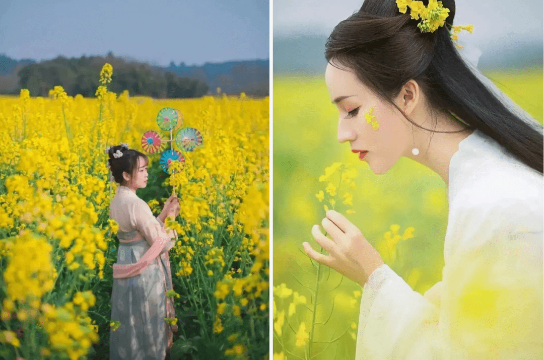 在无边的花海中,必然要换上喜欢的服饰,来一组春日的定格。可以是汉服,也可以是飘逸的长裙,总之,在这样的风景里,只要搭配好心情,怎样的着装都能嘎嘎出片~~