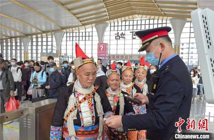 图为民众排队进站搭乘弥蒙高铁动车出行。 中国铁路昆明局集团供图