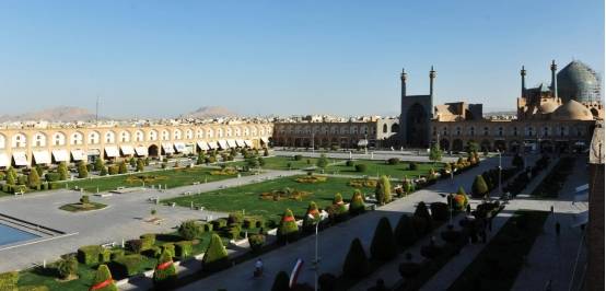 伊斯法罕王侯广场由阿巴斯一世大帝建于17世纪初,广场四边是纪念碑建筑,与一组二层的拱廊相连。1979年,伊斯法罕王侯广场被联合国教科文组织列入世界文化遗产。这是一座公共广场,也是世界上最大的城市广场之一。广场四周由两层楼的拱廊围绕,每个方向的拱廊外围都有一座特别的建筑:东部是谢赫·鲁法拉清真寺,西部是阿里卡普宫,北部是盖塞尔伊耶希华丽的门廊,南部是著名的皇家清真寺。