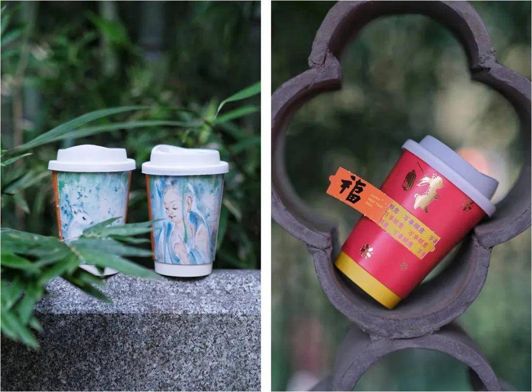 在永福寺,每一种咖啡的名字,都是一句禅语。美式是一杯“涤烦”;拿铁是一杯“停雪”;摩卡是一杯“欢喜”。永福寺在咖啡纸杯的设计上也花了巧思,新春期间由中国美术学院教授潘汶汛设计的仙人指鹿纹样,既有中国画的美感,又有好的寓意与祝福。