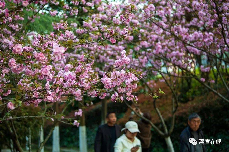 保康县清溪河景观公园,市民观赏竞相绽放的樱花