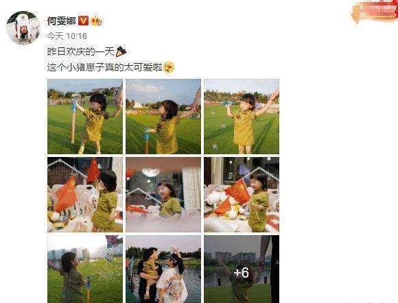 何雯娜写道:“昨日欢庆的一天 这个小猪崽子真的太可爱啦”。