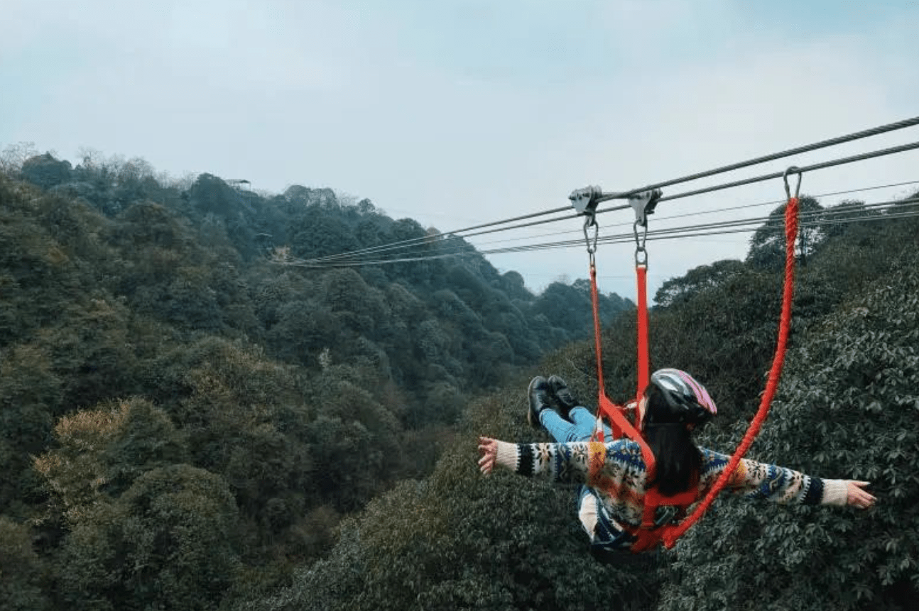 从山的一边边,穿越高空、苍翠森林、木屋,滑向山对面,一趟下来只剩畅快淋漓的快感,吸饱了氧气,也放空了自己。