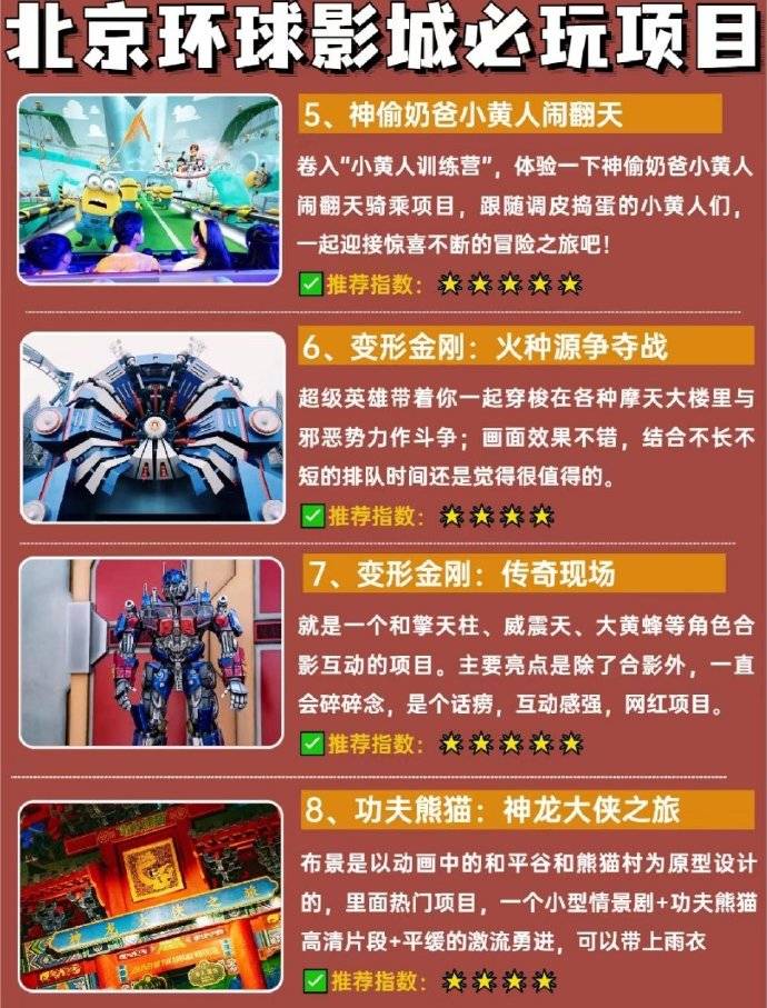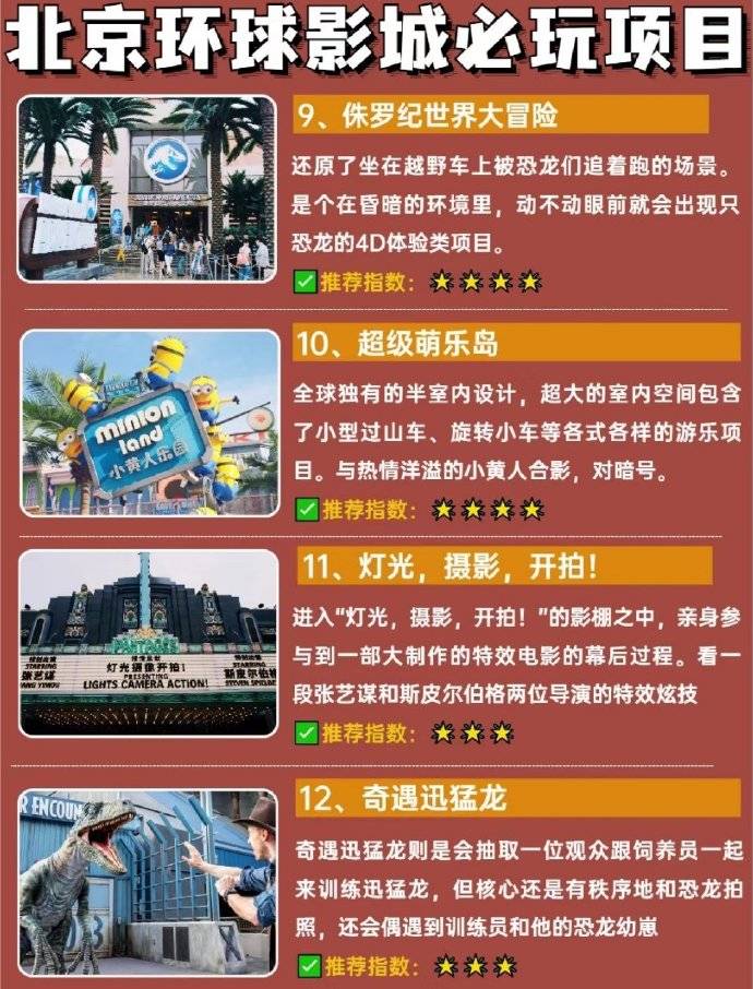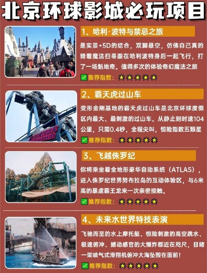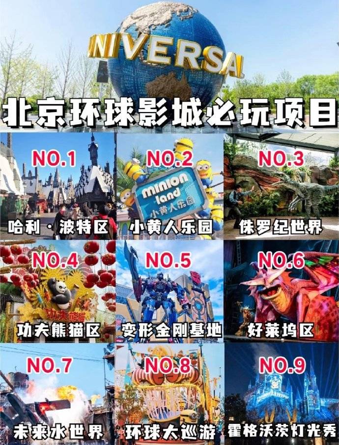 📈路线推荐(可1日游也可2日打卡): 哈利波特→小黄人→侏罗纪→好莱坞→变形金刚→功夫熊猫→未来水世界→城市大道