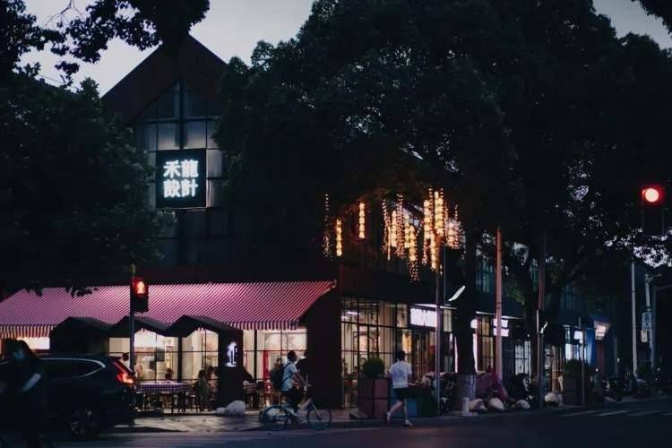 天黑后,门口还开起了夜市,坐下吃点东西,看看光华夜景,休闲惬意。