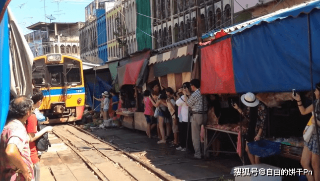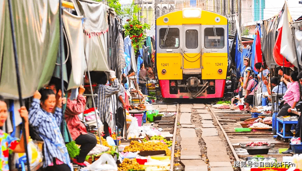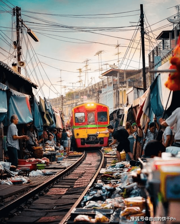 这是泰国梅格隆市场的照片,那里的水果和商品简直就摆在铁路上。而且只有到了预定的火车到来时刻,它们才会被移开。随着火车呼啸而来,买家们不得不紧急挤在最近的商店里,或者留在轨道上任由火车碾过。