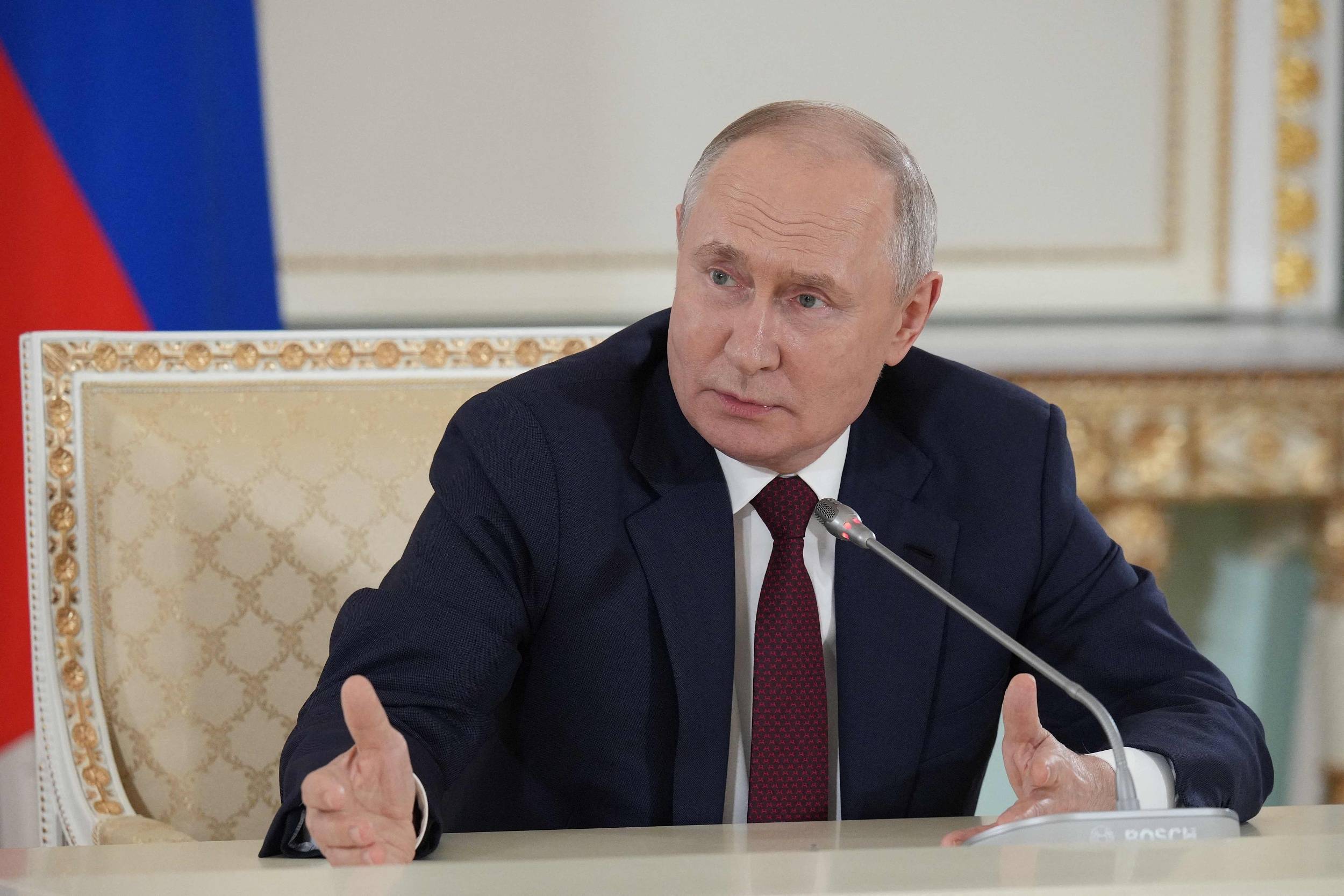 当地时间2023年7月29日,俄罗斯圣彼得堡,俄罗斯总统普京在第二届俄非峰会举行的新闻发布会后会见了媒体。视觉中国 图