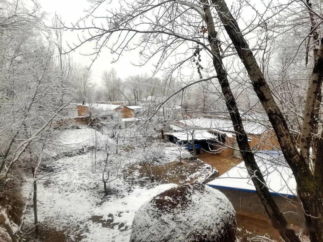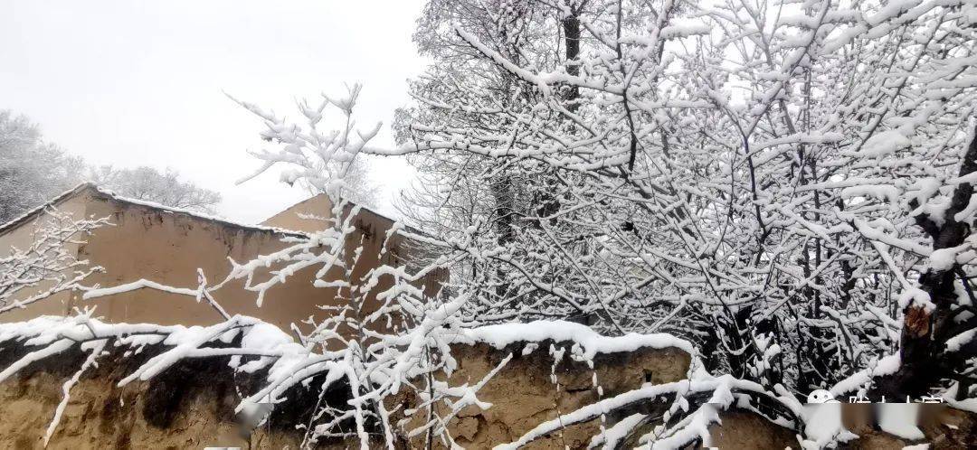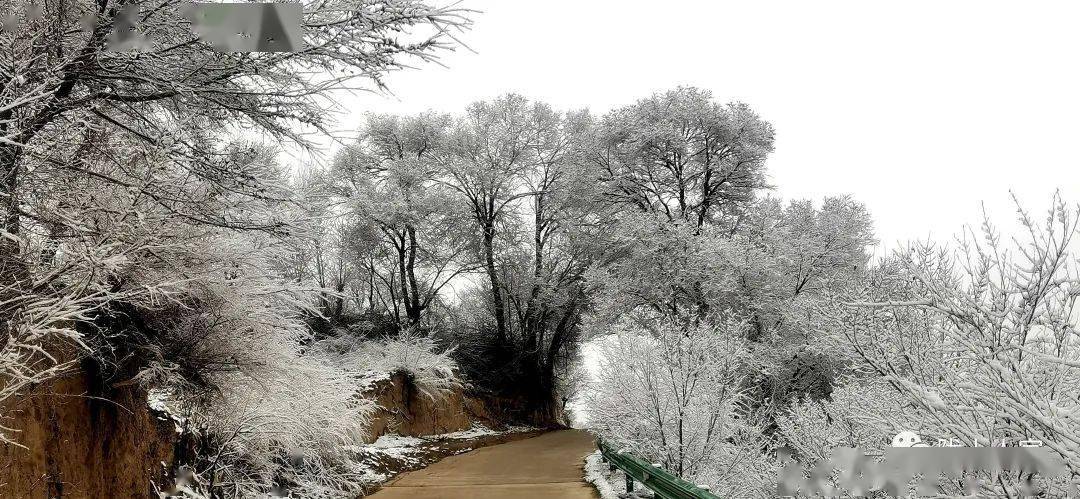拄着木杖沿着这条路上山,路边的大树小草,屋舍柴垛,远处的村庄梯田,在白雪的掩映下,和谐地 构成一幅绝美的风景画。随着山路的延伸,这幅风景画随着脚步的挪动发生着变化,人在画中游,仿佛置身于童话世界!
