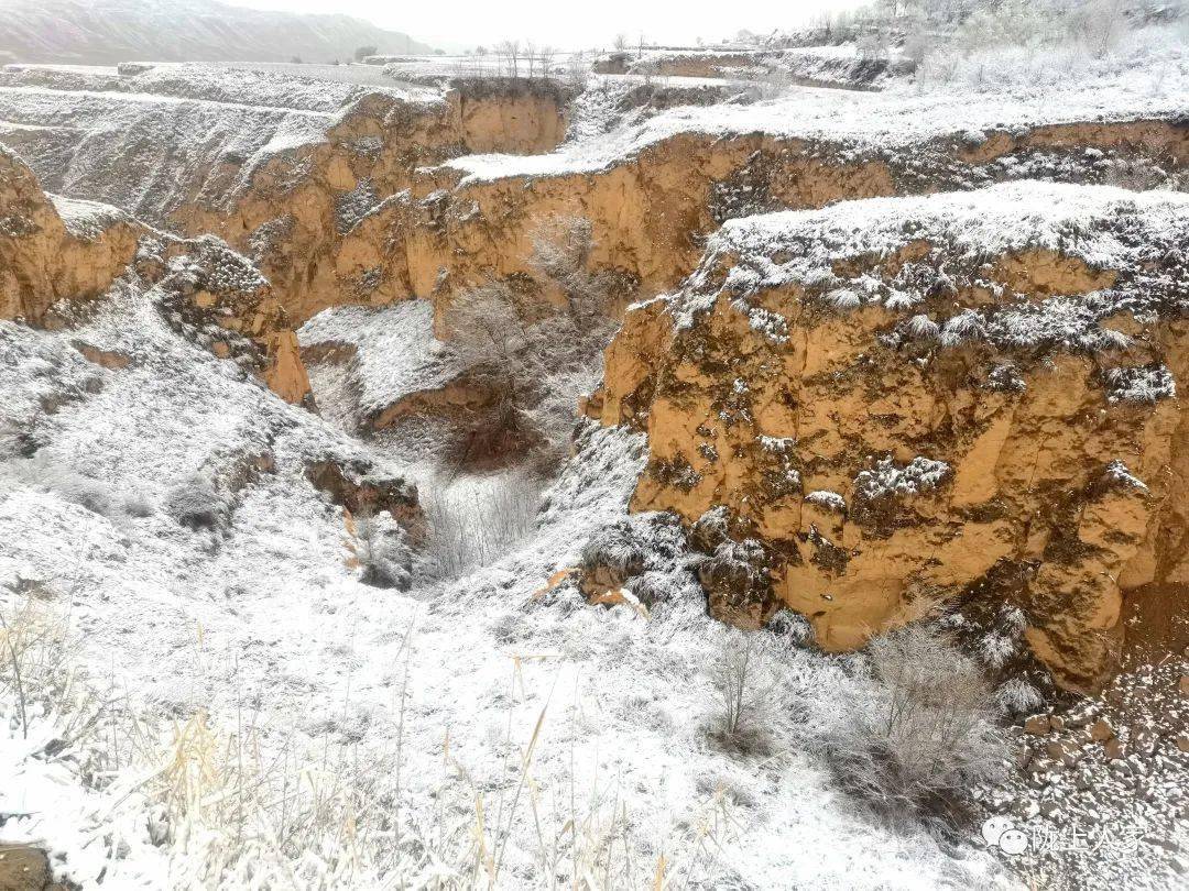 从碧岩沟进去,在首阳镇新华村和碧岩镇龙川村之间,有一条向南的盘山水泥路,蜿蜒曲折向后山延伸。在往碧岩的公路上驻足观看,只见山顶烟雾弥漫,白雪和黄土相间,草木和烟霞相融,如梦如幻。