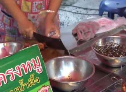 这是年轻的泰国老板,烤好以后,将排骨切开,顾客要多少,老板切多少。然后在秤上秤一下。开始我买了一点,只想尝尝,结果味道真的很不错,跟中国的饮食习惯还是有很大不同的,但是我却爱吃,结果再找个小摊上,我吃完以后,又点了一份。直接吃到撑才罢休。在位置上休息一会,不太撑后,我才结账。