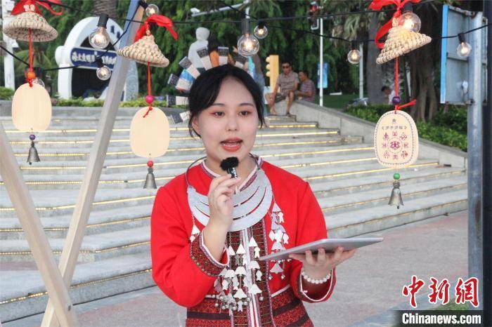 7月29日,一场直播嘉年华活动在三亚湾举行,图为商家穿着民族特色服饰直播推出旅游优惠产品。张月和摄