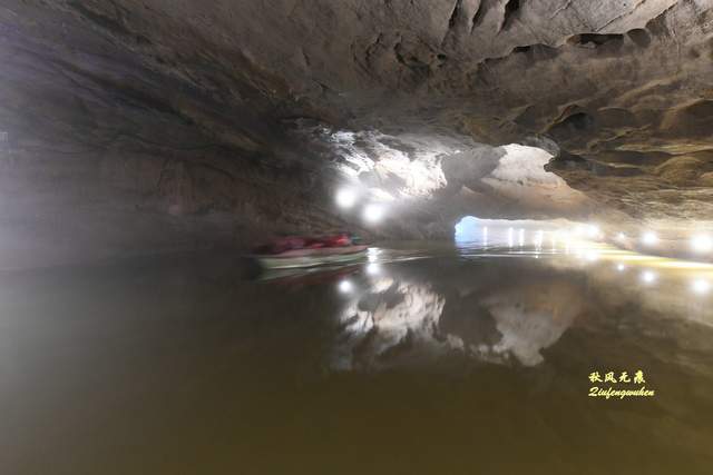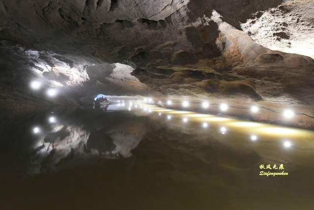 龙湖洞第一幕惊艳是棕榈树群,形似棕榈树的钟乳石屹立水中,与仙境龙宫、九转仙塔一起,在溶洞里与水面一起绘出一幅如梦如画的金色油彩。