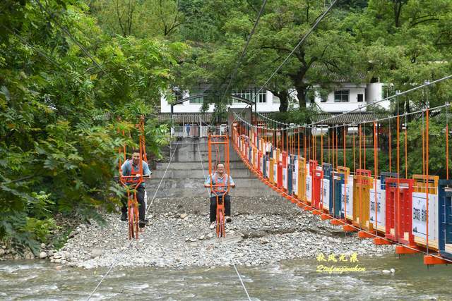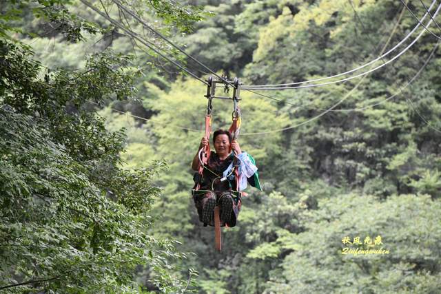 狮子洞的山崖上修建了两条滑索,看到游客从滑索飞驰而下,那份舒畅也许只有自己经历才能体味,北滑索下修建了彩虹桥,在风景里的桥,普通走过也成为风景,而骑滑索自行车经过,也是我们镜中的风景。
