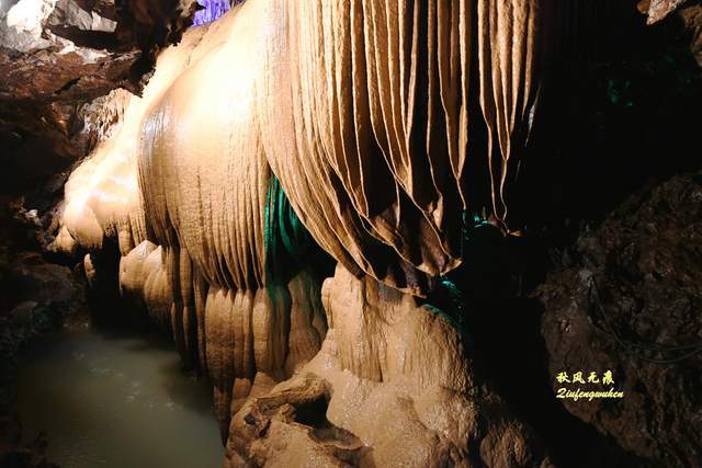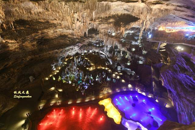 俯瞰里的天宫胜景,造型各异的钟乳石,有擎天一柱的宏伟,也有群笋屹立的壮观,彩色的水田也在积淀着成长的岁月,洞顶的鹅管也在祈盼着万年之后的伟岸。