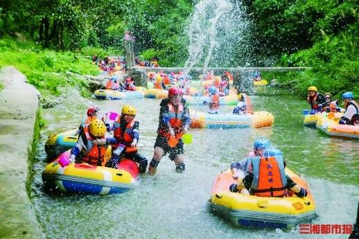 (在浏阳凤凰峡景区,市民漂流后在平缓区开始戏水。凤凰峡景区供图)