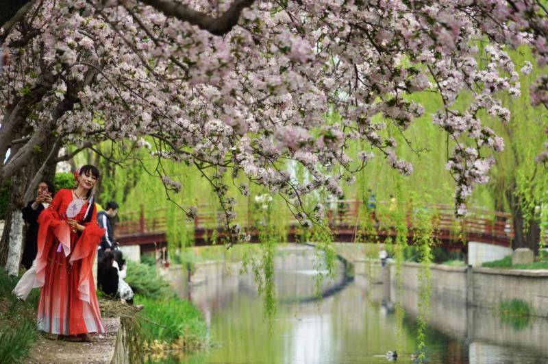 粉红色的垂丝海棠、粉色的西府海棠、淡粉色的果冻海棠、深粉色的绚丽海棠、白色的雪球海棠……4月6日,元大都城垣遗址公园第23届海棠花节正式启动,28种海棠竞相开放,邀游人观赏。