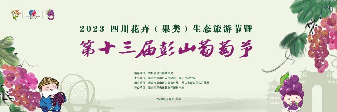 为全面实施乡村振兴战略,深化农业供给侧改革,推动彭山区特色优势农林产业发展,展示彭山乡村生态旅游产品,推进农业与旅游深度融合发展,持续打造具有彭山特色的乡村旅游品牌,8月10日,2023四川花卉(果类)生态旅游节暨第十三届彭山葡萄节将盛大开幕!