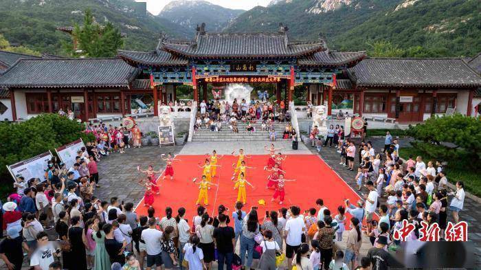 新泰市新甫山景区开展“夜游嘉年华”活动,组织演职人员开展非遗进景区、古风舞蹈等活动,吸引民众前来消暑纳凉。中新社发 赵洁 摄