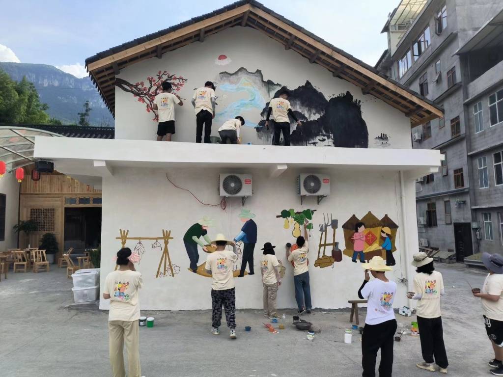 在活动开展期间,实践团队共完成了景江水上运动中心、景阳人家以及清江画谷三部分的墙绘工作,吸引众多外地游客和当地群众打卡留念,为乡村振兴注入了新活力,为乡村发展注入了新动能。