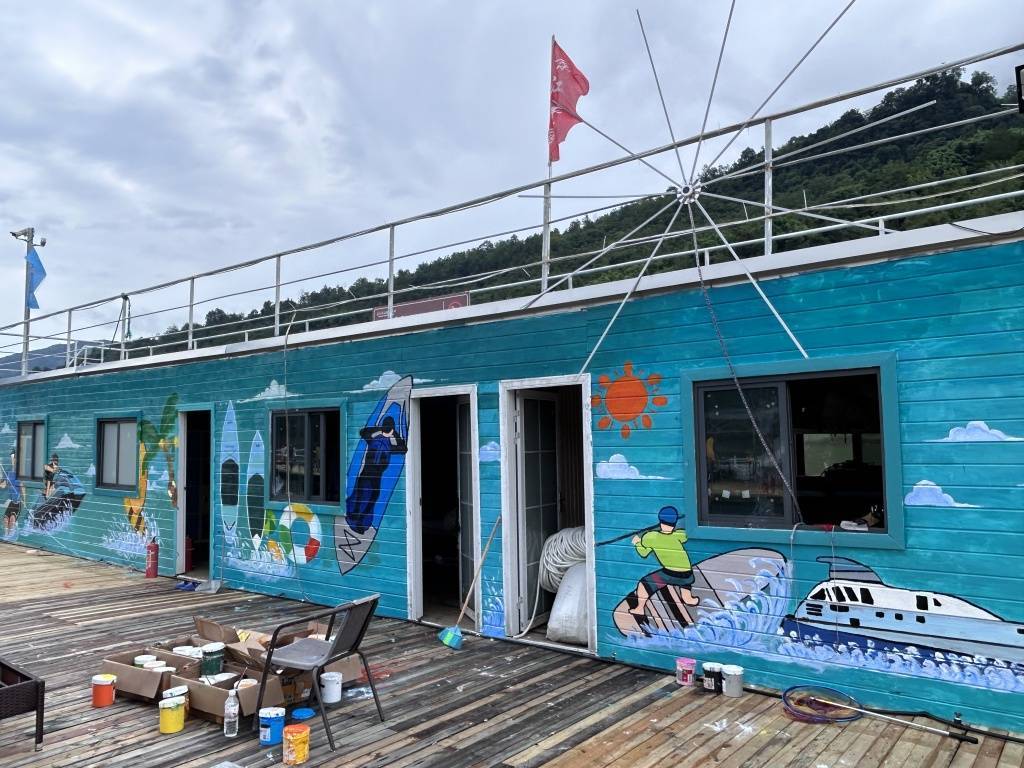 云上恩施报道(建始台记者 颜龙 谢苗苗 通讯员 周琴华 黄宸可 黄润沁)“好多漂亮的墙画,快来给我拍张照...”7月26日,在建始县景阳镇景江水上运动中心,来自重庆的刘阿姨正在文化墙打卡拍照。