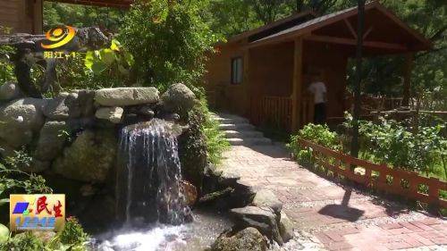 阳春市融媒体中心实习记者 吴雅琳:在双窖镇丰安村草原山舍驿站的门口,这座民宿就坐落在鸡笼顶的山脚下,来到这里,你不光可以看得到山,还能够望得见水,空气清新,风景秀丽,一座座丛林小木屋的设计,也让人感觉心旷神怡、十分安逸。
