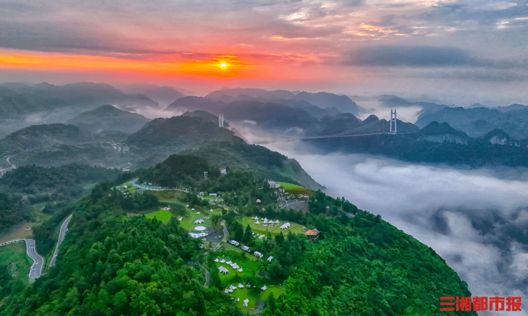 (湘西土家族苗族自治州矮寨峡谷星空露营基地全景云海。景区供图)