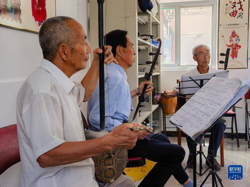 河北省滦平县火斗山镇拉海沟村评剧艺术团的成员在排练节目(7月5日摄,手机照片)。新华社记者 牟宇 摄