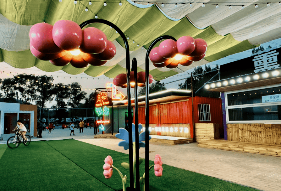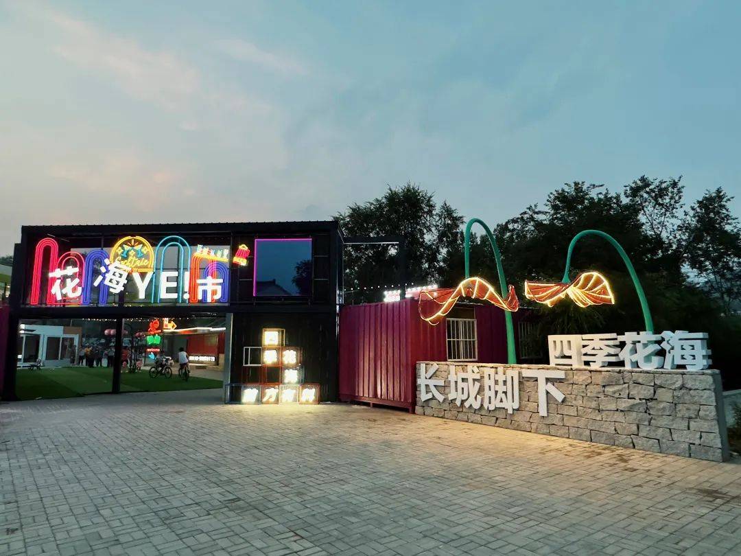 与此同时,四海镇唱响乡村振兴主旋律,推动18个村组团发展,村村合作、整合资源建设“长城脚下,四季花海”夜市,以“积木”式搭建集装箱为主体,以绿色植物元素为引,结合四海文化,融入黑汉岭特色,打造“夜经济”,建设多个美食驿站,拓展商业业态,通过夜景氛围打造,激活乡村民宿活力。目前已进入建设收尾阶段,预计8月12日正式营业。