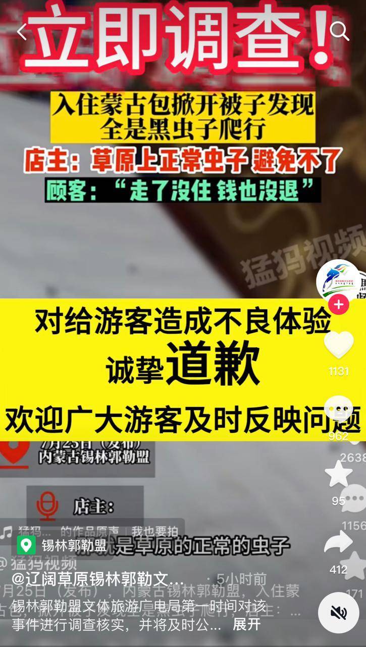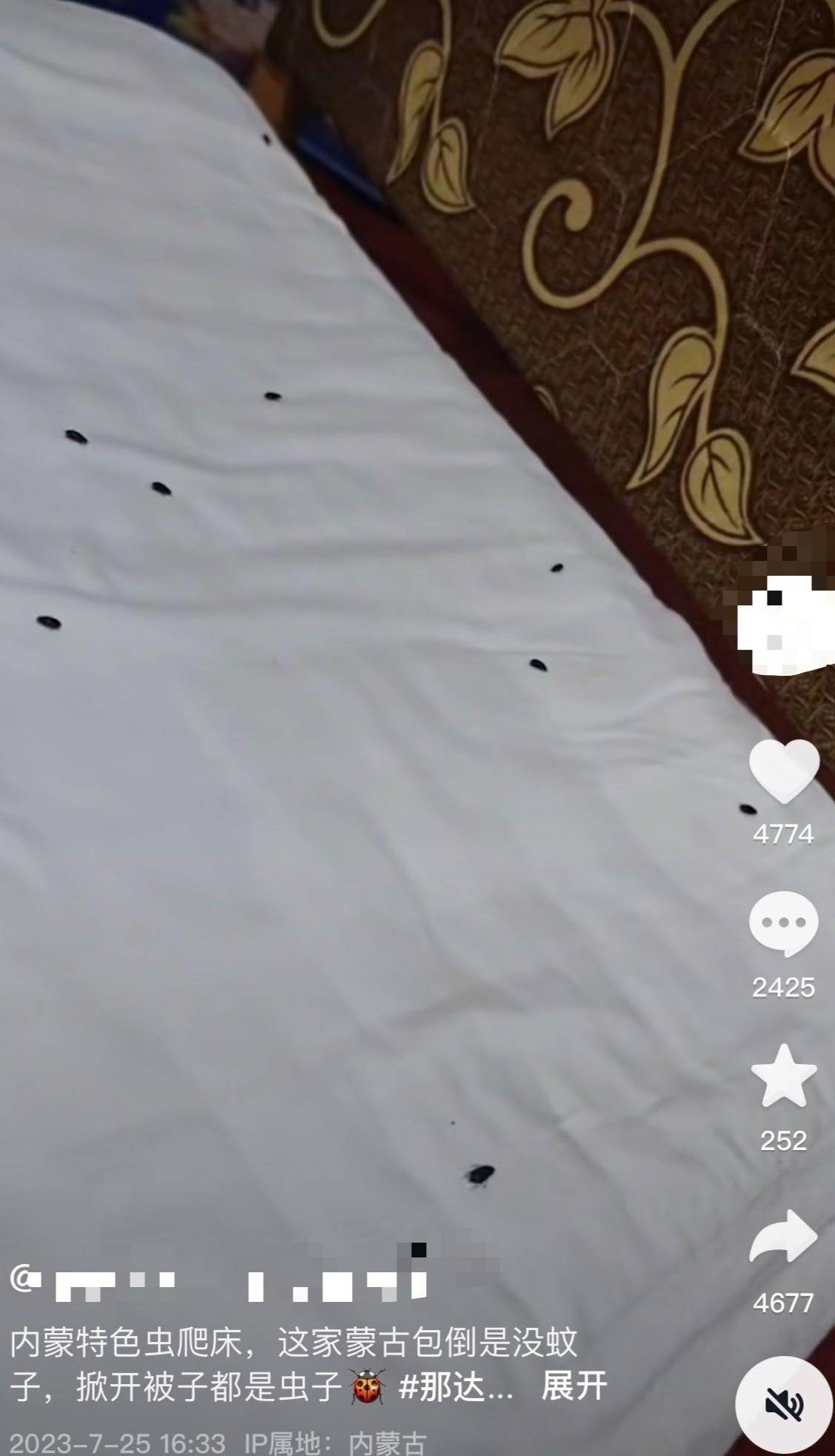 7月24日,内蒙古锡林郭勒盟,网友称在平台上预订了近一千元一晚的蒙古包民宿,没想到现场掀开被子,发现床上满是黑虫爬行,最后一行人只得在车上过夜。