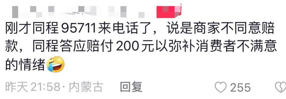 7月25日晚,该网友在社交媒体平台上声称,旅游平台联系到了自己,商家不同意赔款,而平台则提出赔偿200元以补偿消费者不满意的情绪。