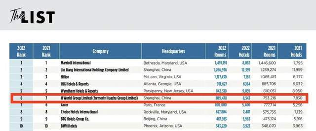 图/《HOTELS》2022年度“全球酒店集团200强”榜单