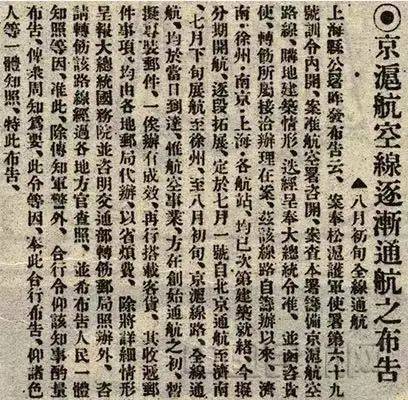 直到1929年5月,交通部沪蓉航空线管理处选定虹桥机场作为上海航空站,才在同年7月通航,并在同年8月开通了一条上海到南京的载客航线。
