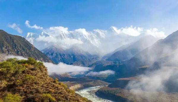 南迦巴瓦的美,不仅仅在岩石陡峭,也在相对高度落差产生的遗世独立中。南迦巴瓦旁正是世界第一深的雅鲁藏布大峡谷,使这里成为世界罕见的岭谷高差悬殊的高山峡谷地貌。