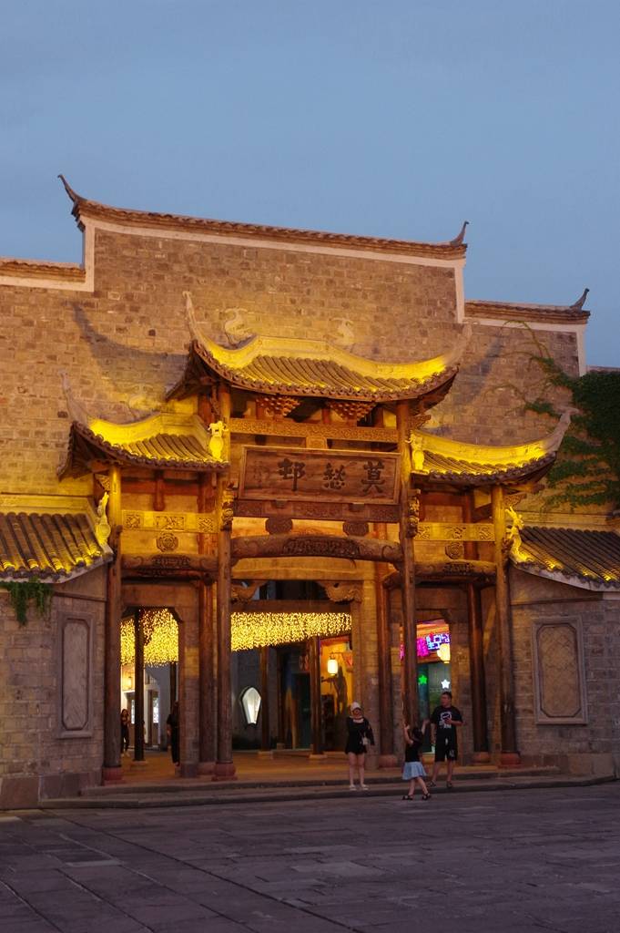 这个村门灯光亮起来时更好看