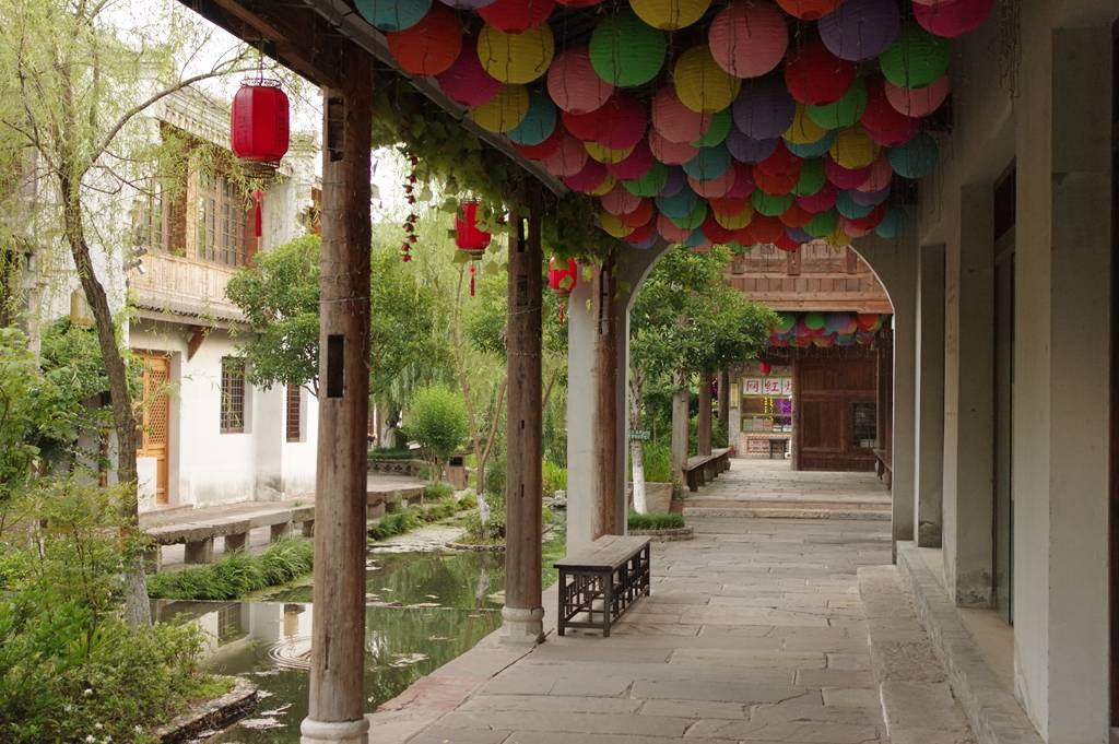 街景看着像是很多城市的仿古街,风格嘛,大致是明清时代的。可以看得出设计和规划颇为用心,建筑的财力投入应该不小。等那些树再长大些,就很漂亮了。
