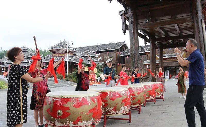 “咚咚咚、哐哐哐……”一早,景区内鼓声响亮,游客们在工作人员的带领下,正学习敲鼓,脸上洋溢着幸福的笑容。