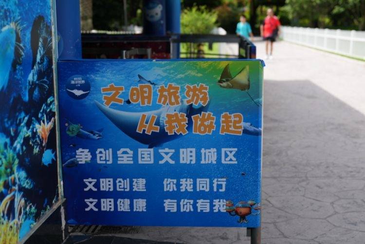 在长风海洋世界,游客们自觉遵守景区秩序,带着孩子游玩的家长以身作则,依次在售票处排队售票,为孩子们树立了文明出游的榜;在内部与海洋动物接触时,也会文明参观拍照,不拍打玻璃影响海洋生物。
