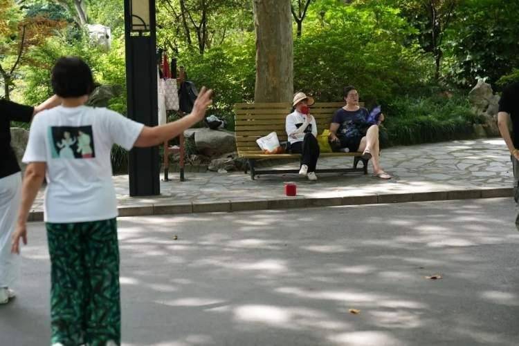 在普陀区长风公园内,早上正在晨练的市民们正自觉使用小型音响在园内锻炼。“控制好音量不要打扰到正在参观的游客,体现上海市民的素养。”正在锻炼的市民王阿姨说。