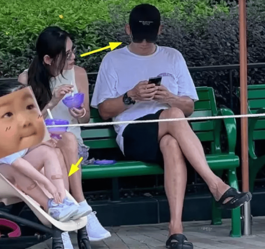 秋瓷炫跟于晓光还特意为儿子大海租了小推车,一家三口坐在长椅上休息。秋瓷炫跟大海人手一杯冰饮,于晓光则是低头专注手机,一家人各玩各的非常和谐。