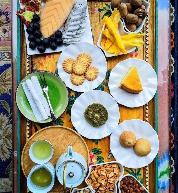 喝茶吃点心是被安排在楼下的天井处,那里临海摆着十多个茶座,点心与饮品本身都足够精致,客人可以坐在这里一边眺望海上的美景,一边悠闲地品茶喝咖啡。
