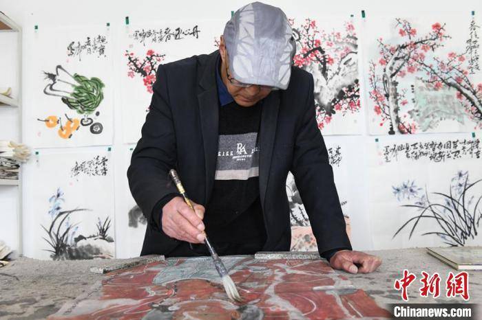 图为甘肃武威天梯山石窟“说唱守窟人”赵旭峰在工作室临摹壁画。(资料图)戴文昌 摄