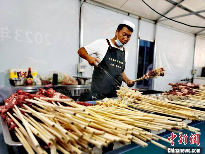 在昆仑美食节现场,记者看到,牛羊肉当属最热门的种类,且烹调方式各异。