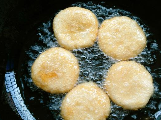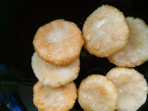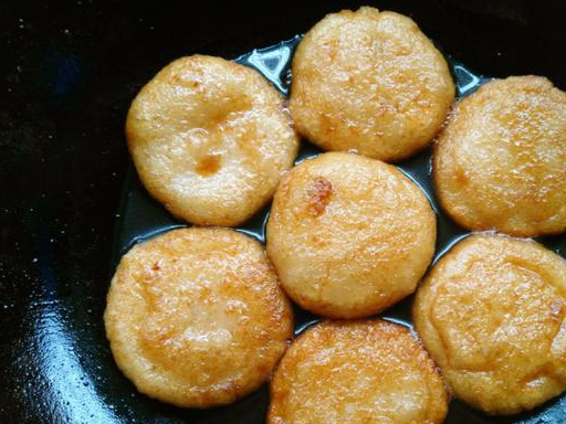 锅中放油,比平时炒菜的油稍多点,油七层热时,下粑粑炸至两面金黄,捞出捞油。