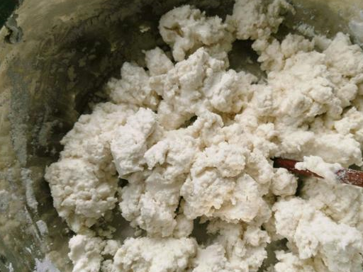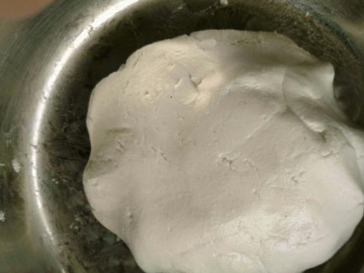 取一个小剂子放入手心,搓成圆球,然后轻轻压扁成饼状。
