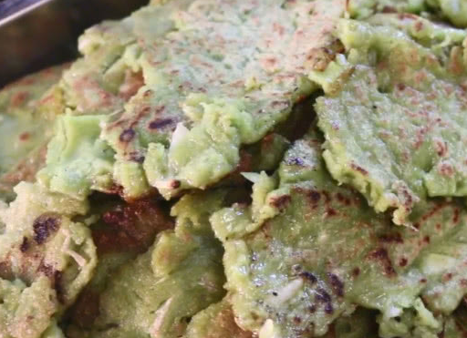 正是因为葫芦粄的制作需要摊成饼,形似披萨,所以当地的小孩都说是农村“披萨”了。而刚出锅的葫芦粄味道喷香,颜色翠绿,看起来就很好吃,一口咬下外酥里嫩,味道确实是很不错的,有韭菜的香味,也有葫芦瓜的清甜,怪不得江西的大人小孩都爱吃了。