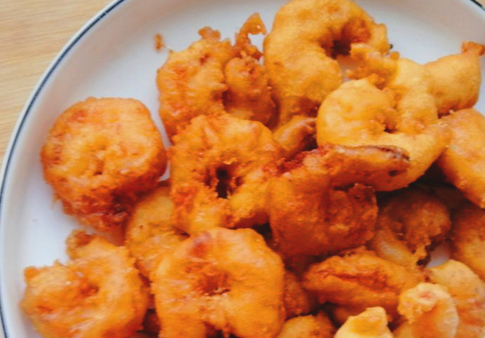 把虾仁控干,一定不要把腌制的汁倒进来,把虾仁倒到面糊里均匀裹上面糊,锅里热油,油一定要够多。油烧到七分成热时,再下入虾仁猛火急炸。一定不要开中小火,那样炸出来的虾仁吃油多,就不脆不鲜了。