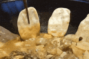 如果说鸡肉是肉身,锅贴便是灵魂地锅,鸡肉快要成熟的时候,贴上纯手工做的贴饼就可以出场了,锅贴可以直接蘸汁吃,稍微一点就够了,