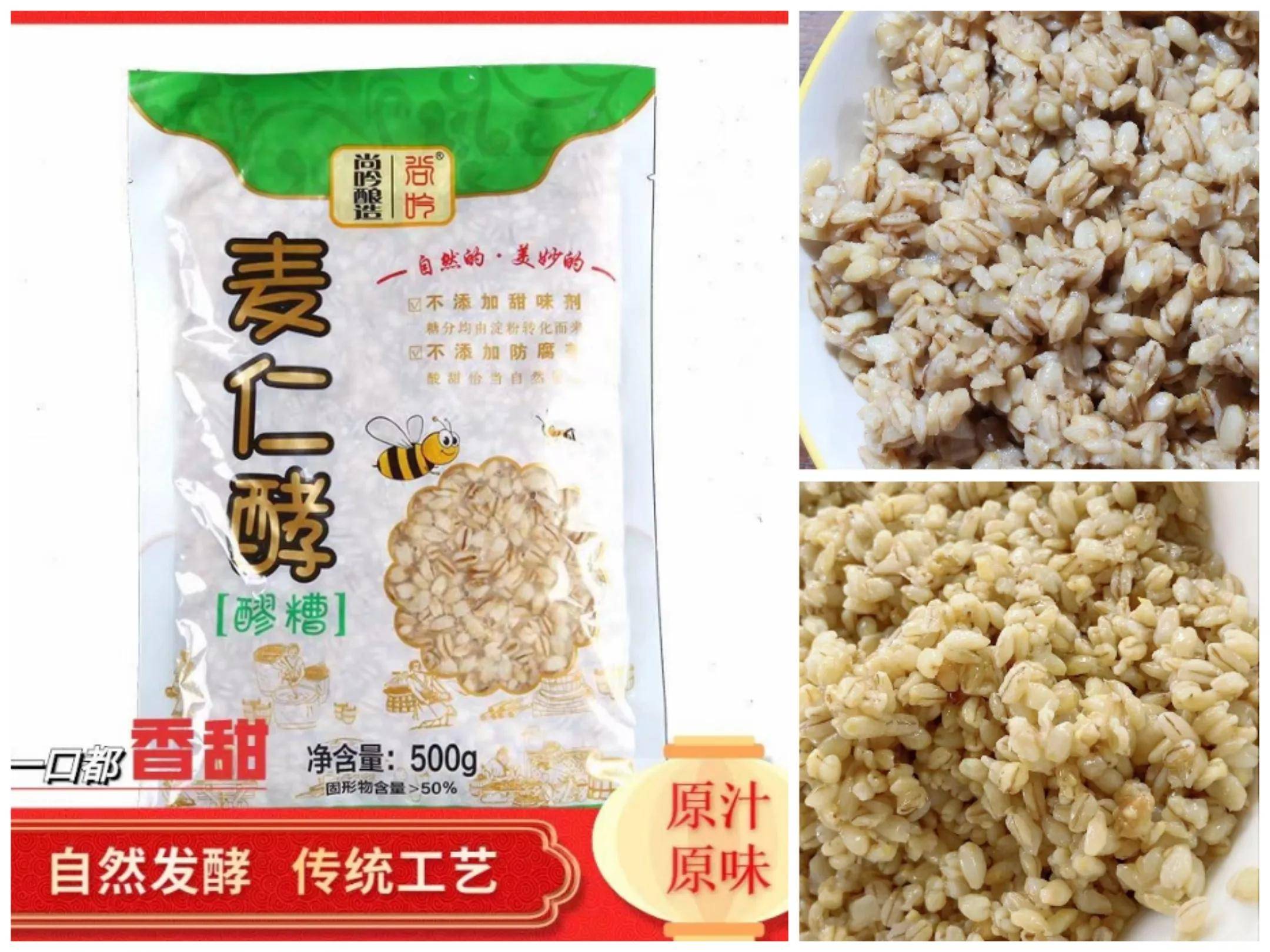 麦仁酒酿,也称麦仁酵子,皖北地区独有的一种风味小吃。有着米酒没有的麦仁香气,味道醇厚,口感极佳,略带着丝丝的酒香。冰镇后,加以一定量的凉开水,就成了一碗麦香扑鼻的酒酿。