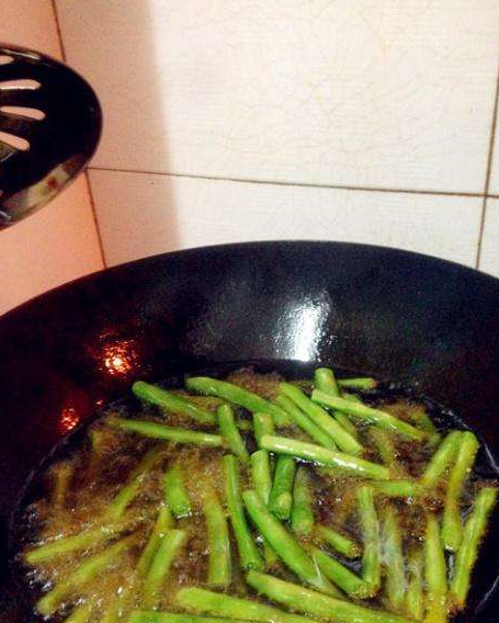 制作这道菜的要点就是四季豆不能炸的太干了,炸干了以后吃了影响口感。